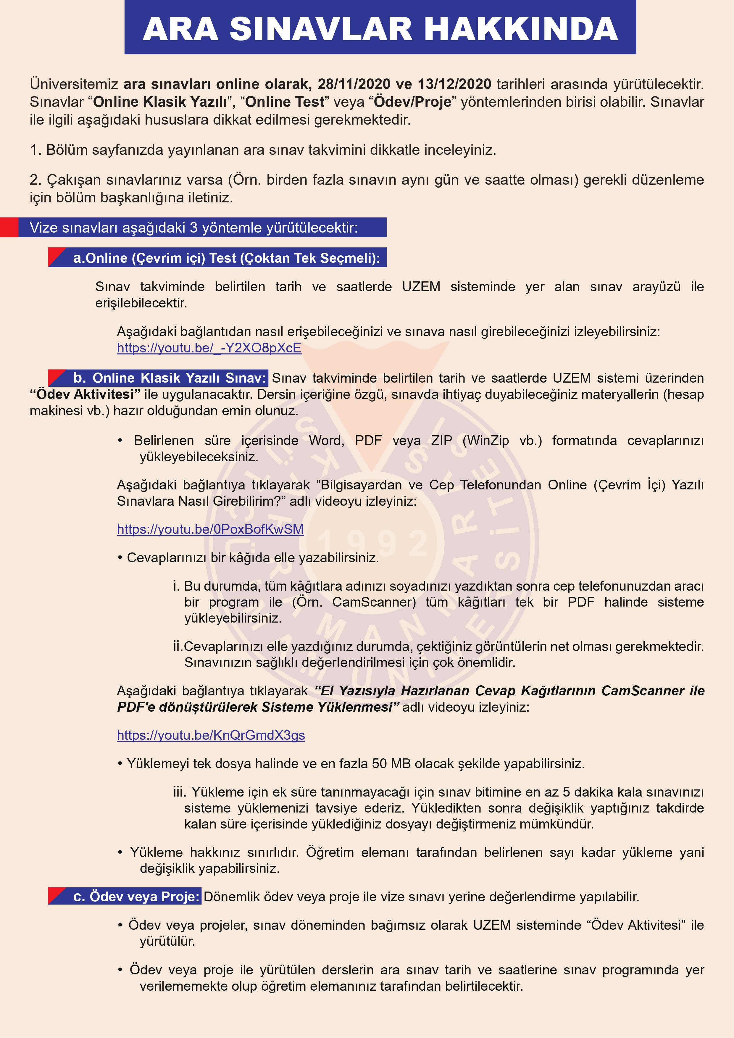 12.11.2020 - 2020-2021 Güz Dönemi Ara Sınav Duyurusu